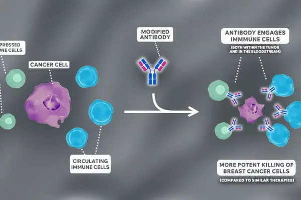That activated the immune cells already present in the tumour to attack it, limiting the growth of tumours in triple-negative and treatment-resistant breast cancers. The research team also found that the modified antibody activated immune cells circulating in the bloodstream, which could boost the body’s overall ability to detect and fight cancer.