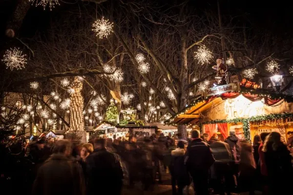 Come evening, Heinzels Christmas Market comes alive with ice skating, shopping and the KölnTriangle observation deck offering stunning views of Cologne's illuminated cathedral and twinkling Christmas lights.