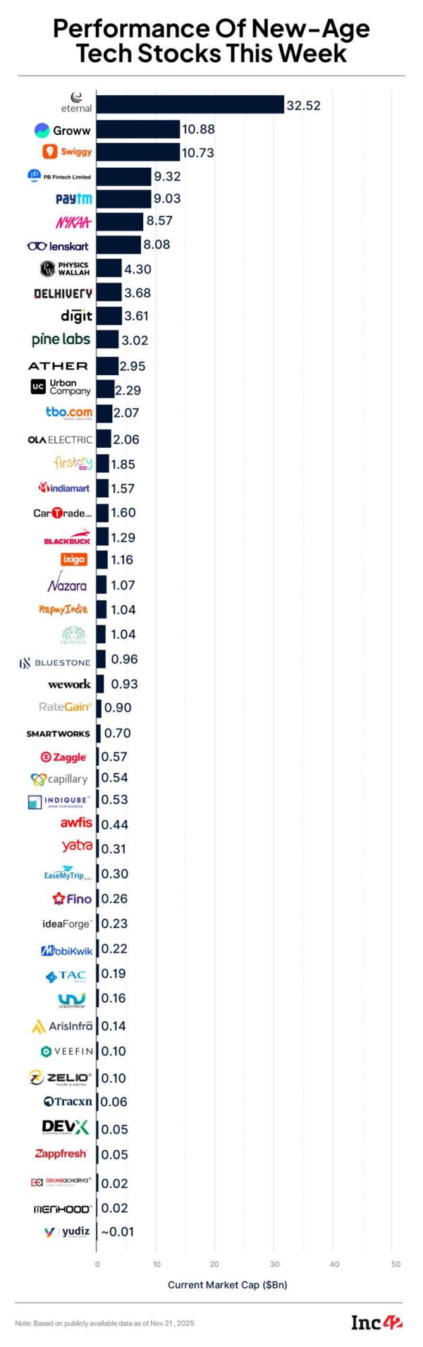 With the inclusion of PhysicsWallah and Capillary, the total market cap of 47 new-age tech companies under Inc42’s coverage stood at $131.52 Bn at the end of the week