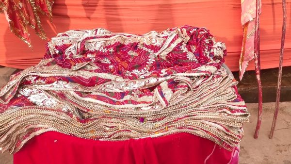 Stretching far and wide, the red-coloured Chunri, sent by Jin Mata Trust, was toured around the ancient historic city of Janakpur after a brief detour, attended by a sea of devotees.