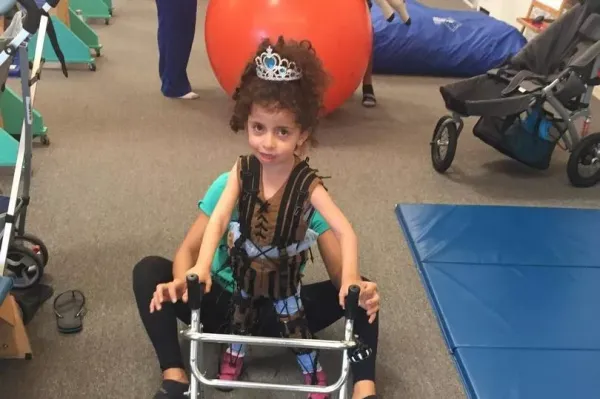 "She has a really rare nerve disorder and she gets shooting pains down her legs that feel like tendons snapping when it's happening. She gets very upset and she'll point to 'pain' on her iPad and she'll point to 'legs' to let us know she's in pain."
