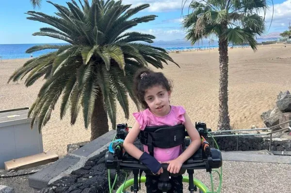 Her parents, Stella and coffee barista George, have intermittently enrolled Penelope in an intensive physiotherapy programme based in Los Angeles since 2018. However, as the cost can range from £10,000 to £15,000 per trip, they've started a fundraiser to ensure her progress continues.
