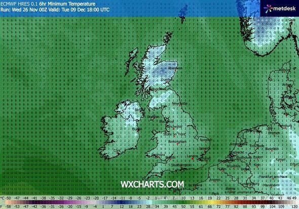 While, some parts of England will be peppered with the snowy conditions, the northern areas are likely to experience the coldest weather with temperature plummeting to -6C in Inverness and nearby.