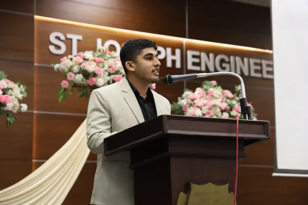 Following her, Mr Glen Elric Fernandes of the Department of Computer Science and Engineering (Data Science) also offered a toast response, sharing insights into his learning experience, teamwork and holistic development during his time at SJEC.