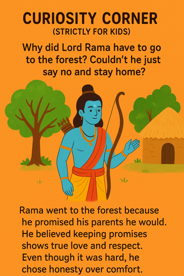 This is such a thoughtful question—one that many grown-ups also wonder! Imagine you’re packing your bag for school one morning, and suddenly someone tells you that you don’t need to go today—you can stay home and play instead. Sounds tempting, right? But deep inside, you know that doing the right thing is more important than doing the easy thing. That’s exactly how Lord Rama felt.