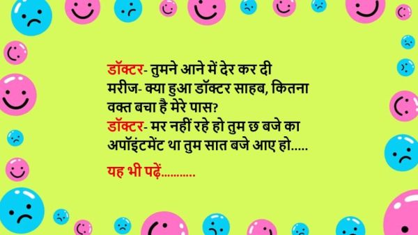 Doctor- You are not dying, the appointment was at six o’clock, you came at seven o’clock…