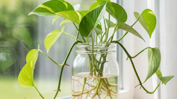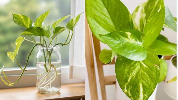 Pothos is a water plant that grows well even in low light. Its heart-shaped green leaves give a natural and fresh look to the house. It can be kept on a shelf, table or hanging jar. Giving liquid fertilizer once a month improves its growth.