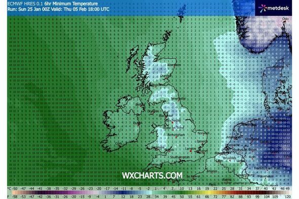Snow depths could reach 10cm around Inverness, while around half of England, from Carlisle down to Stoke-on-Trent, could be painted white during the same period, according to predictions. Temperatures are also expected to dip during the first few days of February, with the mercury hovering at or just below 0C for much of the country, and dropping to -4C in Scotland on the evening of February 5.