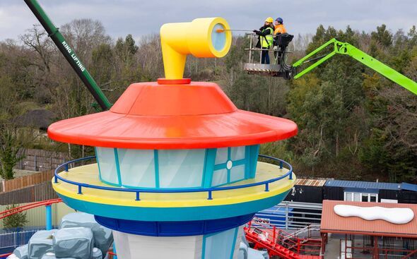 The Lookout Tower will be part of the new 'Chase's Mountain Mission' ride, the attraction's entry-level rollercoaster. The new photographs show PAW Patrol character, Rubble, who is overseeing the site's construction, and Sian Hooper, creative director at Merlin Magic Making and the mastermind behind the new land, putting the finishing touches to the iconic Lookout Tower. This includes the tower's pièce de résistance, the legendary PAW Patrol pup tag.