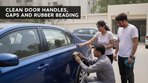 Holi colours often settle in small gaps that are easy to miss. Check around door handles, window edges, rubber beading and panel joints. These areas trap coloured water, which can leave stains or cause rubber parts to harden over time. Open the doors and wipe the inner edges properly. Use a damp cloth to clean around seals and corners where colour may collect.