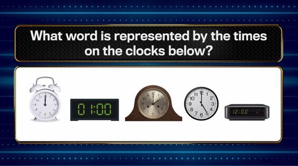 The puzzle asked: "What word is represented by the times on the clocks below?" with five clocks displaying 12pm, 1am, 2pm, 5pm and 12am. After correctly identifying "label" as the answer, relating to the position of each letter in the alphabet corresponding with the hour number, Zoe bagged an astounding £97,000.