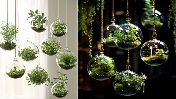 Glass terrarium planters are very unique and modern. These consist of a small glass bowl or geometric container in which small plants and decorative stones are planted. This design gives an artistic and premium look to the house.