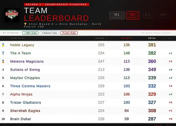 Round 3 at Dubai Creek will see teams nominate five pairs in a best-ball Stableford format, with the four best scores counting, putting a premium on both individual performance and teamwork.