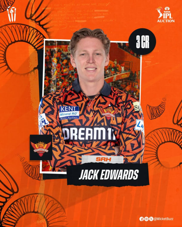 Hyderabad: Sunrisers Hyderabad (SRH) face a significant injury crisis heading into the Indian Premier League (IPL) this season, with not just captain Pat Cummin set to miss the start of the tournament but now even allrounder Jack Edwards completely out of it.