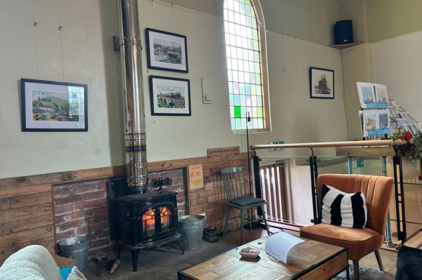 We had breakfast at The Aurrie, a delightful cafe set within a converted church that offered such a warm and inviting ambience. Artwork from local artists lined the walls and was available to purchase, alongside an excellent range of hot dishes, coffees, and a cake display packed with tempting options. I chose the veggie haggis and potato scone roll with a flat white, and it was absolutely lovely.