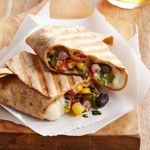 These easy wraps are filled with black beans, corn, red pepper and creamy queso. They cook up quickly in a panini press.