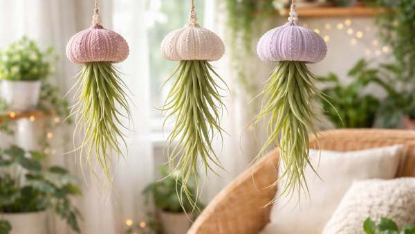 Hanging Air Plant Jellyfish is a decoration creativity in which an air plant is placed inside a shell or handmade object in such a way that it looks like a jellyfish. Its most important thing is that it does not require soil, making it a clean, mess-free and low-maintenance option for decoration. It is a great thing for decoration, especially for small houses or apartments.