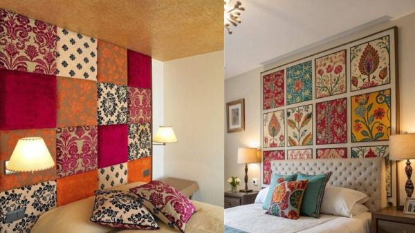 Fabric wall decor in Bedroom Decor Ideas is a great way to give a royal, warm and artistic look to the room without spending a lot of money. In this, small different colored clothes are placed in the panel, which is sustainable and a unique option. Use velvet, cotton, silk and handloom fabric for this look. You can choose it in bohemian and vintage classic style.