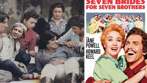 Satte Pe Satta is loosely adapted from the Hollywood musical Seven Brides for Seven Brothers. Both follow the story of seven brothers, whose lives take a turn when the eldest gets married and brings home a wife who is less than impressed with their wild ways. She then takes it upon herself to civilise the chaos, essentially turning into a one-woman finishing school. The Bollywood version, starring Amitabh Bachchan, spices things up with action, suspense, and a criminal subplot.