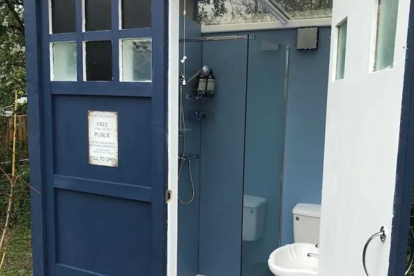 But perhaps the most fun feature is the bathroom, which is set within a replica TARDIS box. It has a private shower, toilet, and sink, so you don't have to deal with morning queues at a shower block.