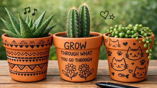 Terracotta regulates heat in the sun. Keeps the soil cool, does not cause problem of overwatering and plants remain more fresh. But keep in mind that these can break if they fall down, so keep them in a safe place in the corner.