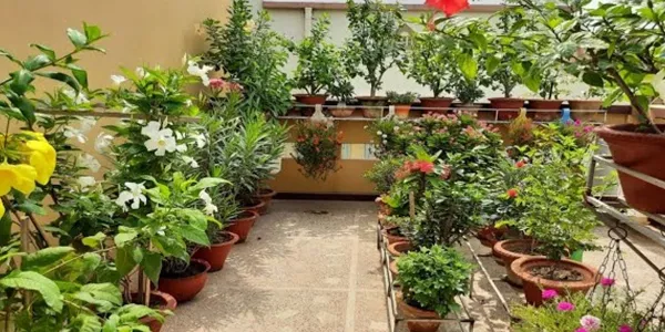 4. Many people garden on the roof of the house as a hobby. Tubs are filled with flowers and fruits. Did you know that if the tub is made of clay, it helps to keep the room cool.