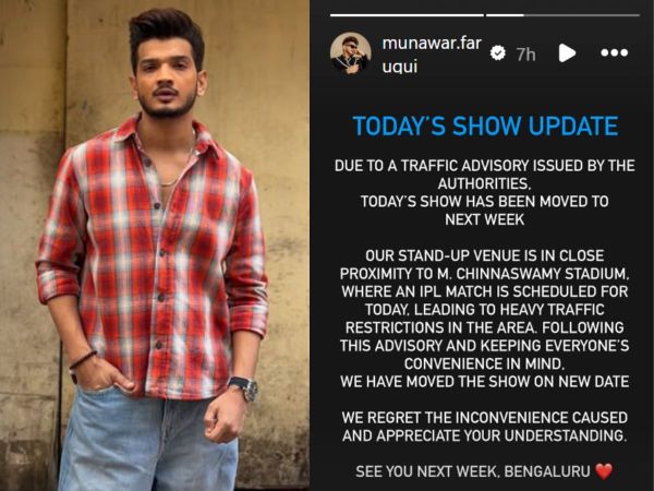 The post Munawar Faruqui’s Bengaluru Show Delayed Due To ‘Heavy Traffic Restrictions’: ‘We Have Moved It On…’ appeared first on NewsX.