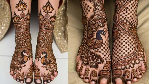 Peacock design is considered to be the most beautiful and traditional pattern of Indian Mehndi. The peacock design on the feet looks very rich and attractive. This design is a symbol of auspiciousness and beauty, hence it is given a special place in bridal mehendi.
