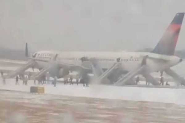 The Federal Aviation Administration said it would investigate the incident. All five of the runways at Hartsfield Jackson Atlanta International Airport were closed for at least a time on Friday, and Delta said at midday on Friday that it had already cancelled about 500 flights at the airport. The airline said in a news release that snow "began earlier and with heavier intensity than forecast, which reduced de-icing capability and slowed operations." Delta said customers could rebook without paying additional costs, and warned that more flights may be cancelled or rescheduled.