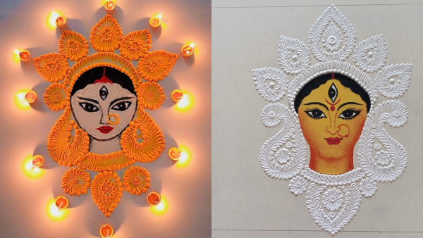 The face of Maa Durga has been depicted in the design with colours. You can also try something different and choose this. At the same time, if you do not know how to make Rangoli, then choose Flower Rangoli Design instead of much frills.