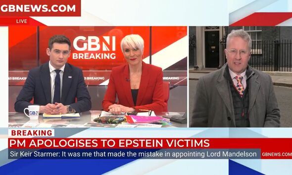 GB News' regular programming was interrupted as presenters Dawn Neesom and Tom Harwood halted the show to go live to Downing Street with breaking news about Prime Minister Keir Starmer. As they cut to a live feed outside of No. 10, they were joined by political editor Christopher Hope, who reported that Sir Keir had issued an apology to the victims of convicted paedophile Jeffrey Epstein, after appointing the former Lord Peter Mandelson as ambassador to the United States.
