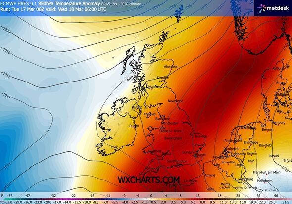 "The warmest spots are likely to be in parts of west Wales and western England, where under sunny skies, 18-19C, possibly even 20C is on the cards.
