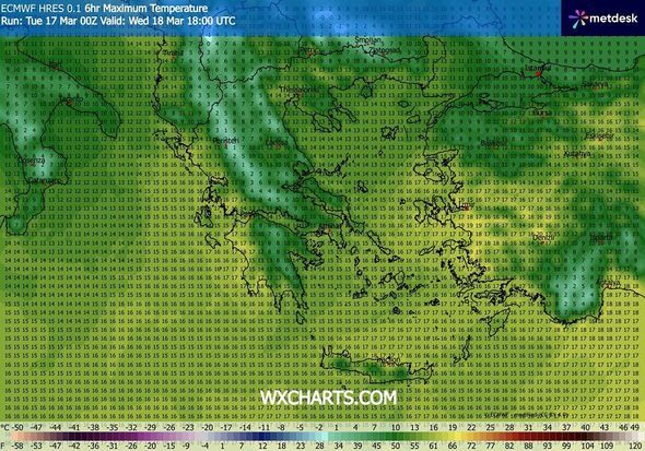 WXCharts weather maps, which are prepared using the MetDesk data, shows that parts of Greece will experience temperatures hovering around 17C and 18C. However, according to the weather charts, the temperature levels in Greece will even plunge to as low as a chilly 2C, indicating the possibility of unsettled conditions across the popular European holiday destination. Dan Harris, Chief Forecaster at the Met Office, said: "Wednesday looks likely to be the warmest day of the week for many, with high pressure dominant.