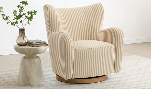 For something a little more understated, this beige-striped armchair offers a subtle nod to the season. The neutral palette keeps things calm, while the stripe adds a bit of character. But the real appeal is in its hidden practicality: a smooth swivel base that makes it easy to turn.