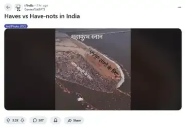 After the Maha Kumbh stampede of 2025 that claimed the lives of more than 30 people, a picture of Maha Kumbh is going viral which shows how the authorities have divided the whole place into two land pieces, one for common people and other for VIPs or celebrities showing the unfair treatment. The picture going viral on the internet has garnered criticism from the users and many sarcastic comments against the authorities.
